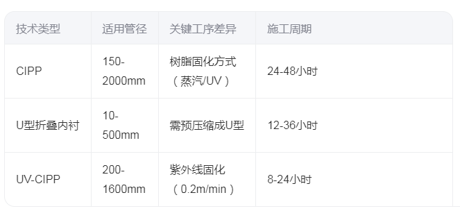 注:所有工藝均需完成閉水試驗和CCTV復檢驗收?。支管修復需額外開口處理?。